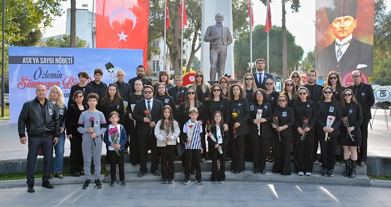 Tire’de 10 Kasım Atatürk’ü Anma Günü kapsamında düzenlenen “Ata’ya Saygı Nöbeti” Cumhuriyet Meydanı’nda sabah 09.05’te başladı. Gün boyunca devam eden nöbet, akşam 21.05’e kadar sürdü.
