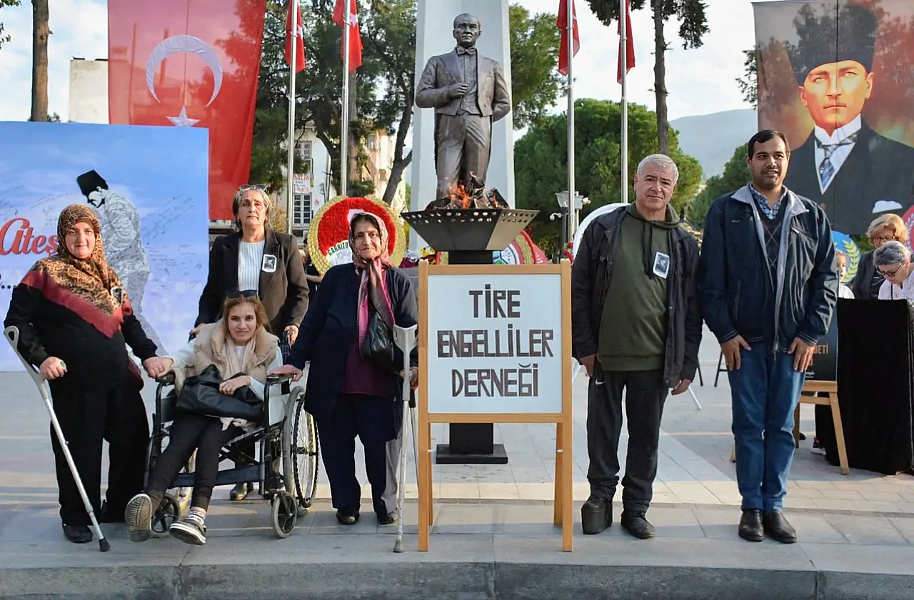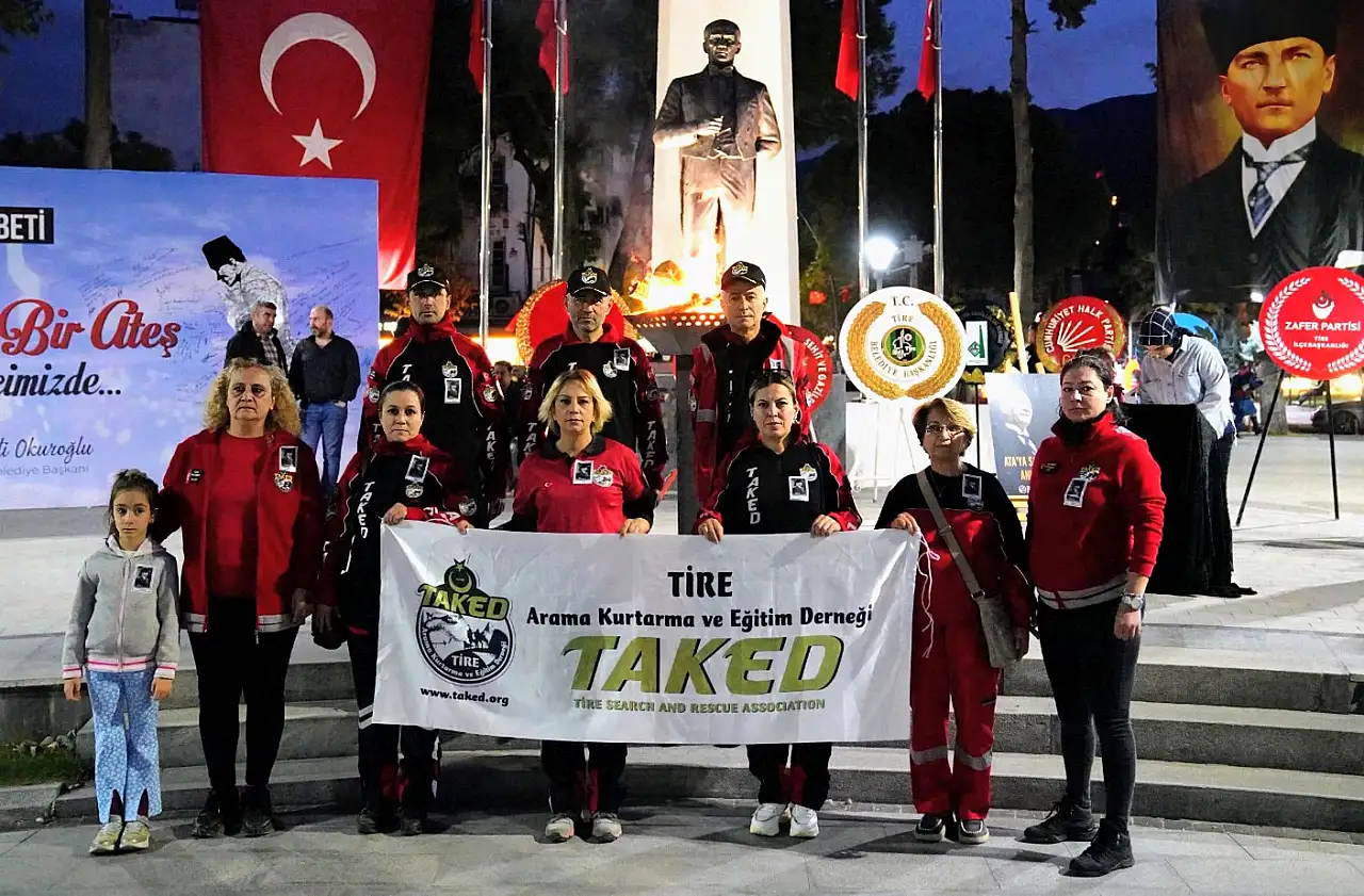 Tire'de faaliyet gösteren kamu kurum ve kuruluşları, sivil toplum örgütleri, siyasi partiler ve çok sayıda vatandaş, gün boyunca nöbete katılarak Ata’ya olan sevgisini ve saygısını gösterdi. Katılımcılar anı defterine duygu ve düşüncelerini yazarken, Atatürk posteri ve meşaleler önünde hatıra fotoğrafları çektirdi. Cumhuriyet Meydanı, bir an bile boş kalmadı.