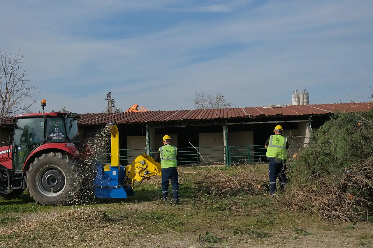 Günlük saha çalışmaları kapsamında toplanan ağaç dalı ve budak atıkları, traktör arkası özel dal öğütme makineleriyle işleniyor. Hacim küçültme işleminden geçirilen bu atıklar, kompost yapımında kullanılmak üzere ayrıştırılıyor. Bu sayede hem atık miktarı azaltılıyor hem de kimyasal gübreye alternatif, tamamen doğal bir materyal elde ediliyor.