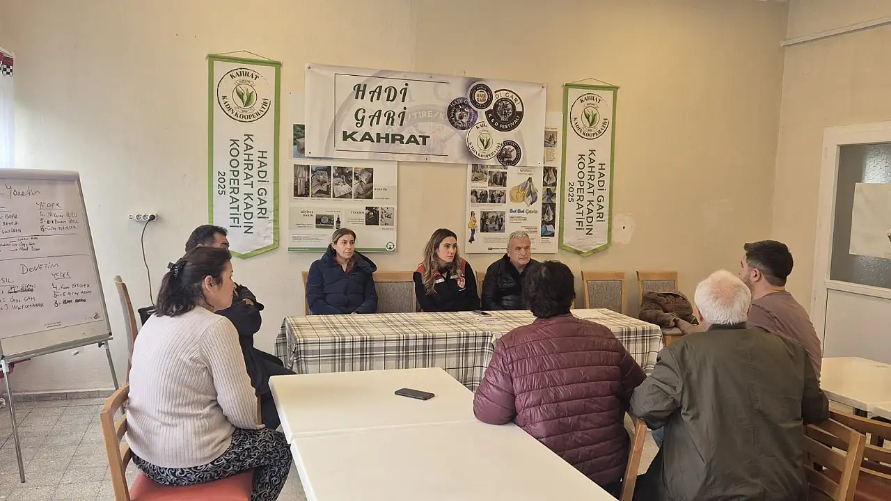 Tire İlçe Tarım ve Orman Müdürü Eda Özden, teknik ekibiyle birlikte Hadi Gari Kahrat Kadın Kooperatifi'ni ziyaret etti.