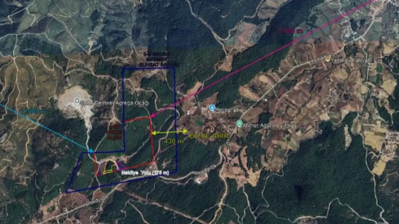 Şirket, 16 hektarlık alanda yılda 400 bin ton kalker çıkarmayı hedefliyordu. Ancak bölgenin çayır-mera statüsünde olması, çevresinde zeytinlikler, incir bahçeleri ve tarım arazileri bulunması nedeniyle bakanlık olumsuz karar verdi. Proje hayata geçseydi, en yakın yerleşim alanına yalnızca 430 metre uzaklıkta olacaktı.