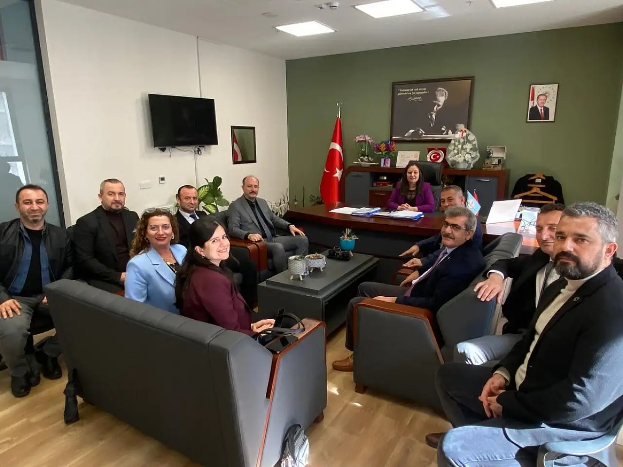 Tire'de eğitim camiası buluştu. Türk Eğitim-Sen İzmir İl Yönetimi ve Tire İlçe Yönetimi, İlçe Millî Eğitim Müdürü Duygu Çevirgen Uzun'u makamında ziyaret etti.