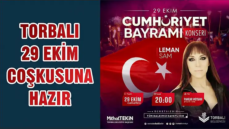 29 Ekim Cumhuriyet Bayramı için Torbalı Belediyesi hazırlıklarını tamamladı. Bu yıl bir dizi etkinlikle Cumhuriyet Bayramı’nı kutlayacak olan Torbalı Belediyesi, programlarının finalini Leman Sam konseri ile gerçekleştirecek