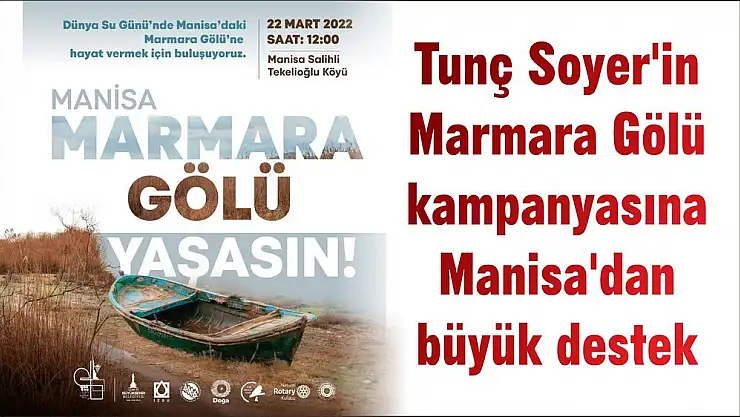 Doğaseverler, 22 Mart Dünya Su Günü’nde İzmir Büyükşehir Belediye Başkanı Tunç Soyer öncülüğünde kurumak üzere olan Manisa’daki Marmara Gölü’ne su verilmesi talebiyle buluşacak. “Marmara Gölü Yaşasın” etkinliği, 22 Mart saat 12.00’de Manisa Salihli’deki Tekelioğlu Köyü meydanında yapılacak. Onlarca kuş türüne ev sahipliği yapan göl için düzenlenen “Marmara Gölü Yaşasın” etkinliği ile göldeki yaşamın ve balıkçılık faaliyetlerinin devam edebilmesi için göle su verilmesi gerektiğine dikkat çekilecek.