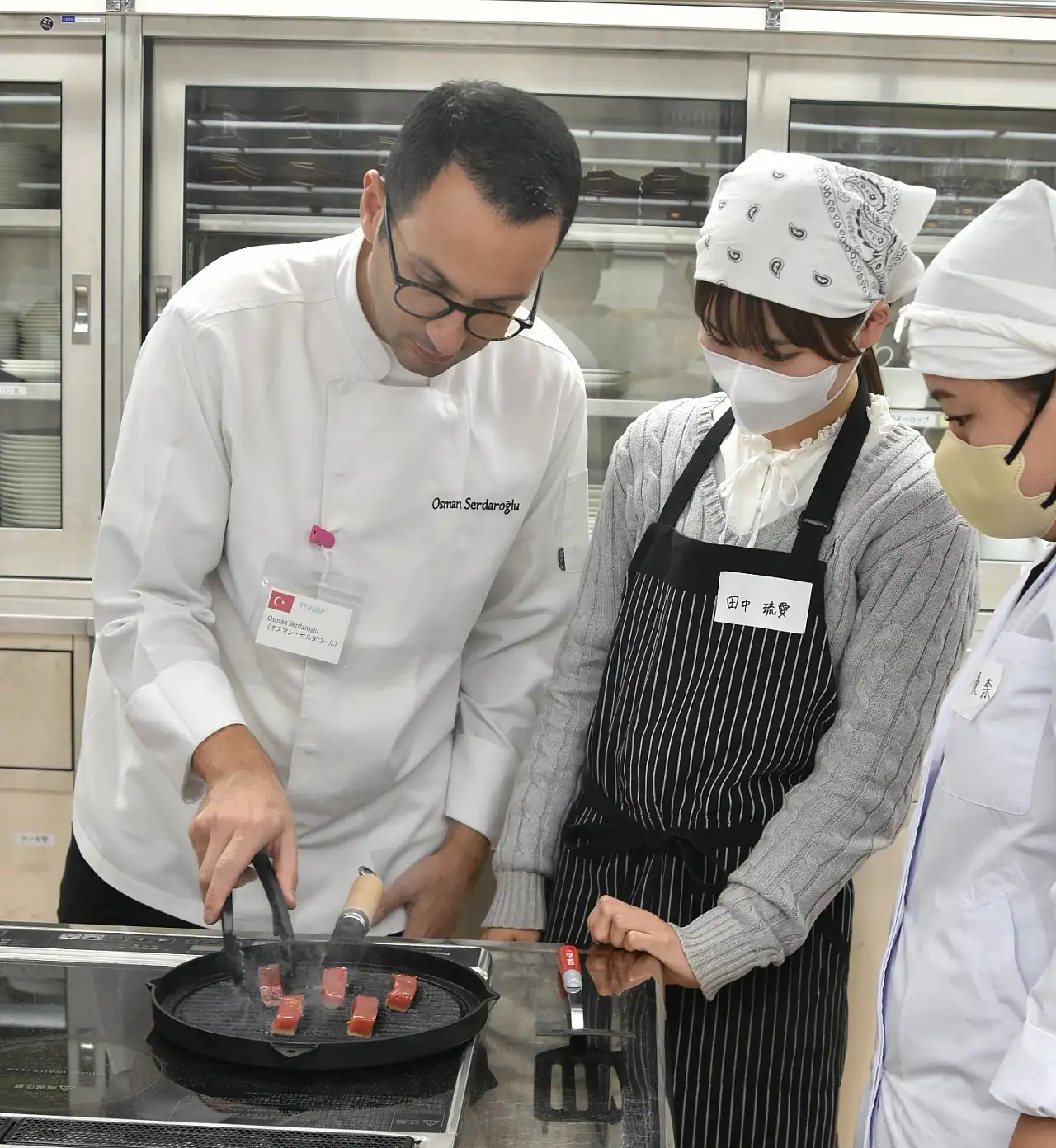 Türkiye’nin Michelin yıldızlı restoranı TERUAR’ın kurucusu ve şefi Osman Serdaroğlu, Japon öğrenci ve akademisyenlere üç oturum boyunca Türk mutfağını tanıttı. Serdaroğlu, Türk orkinosu, zeytinyağı, bulgur, baharatlar, nar ekşisi gibi ürünlerin kullanıldığı menüler hazırladı; geleneksel Türk çayı ve Türk kahvesi seremonisiyle etkinliği zenginleştirdi.