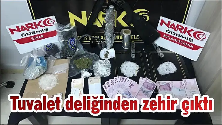 Ödemiş ve Bayındır ilçelerinde polis ekiplerince şüpheli şahısların ev ve iş yerlerinde yapılan aramalarda uyuşturucu maddeler ele geçirilirken tuvalet deliğine ve soba içerisine atılan uyuşturucu maddeler polis ekiplerinin dikkatinden kaçmadı. Maddelerin polis tarafından bulundukları yerden çıkarılma anı ise cep telefonu kamerasına yansıdı.