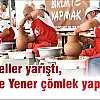 Menemen Belediyesi’nin ilkini düzenlediği Uluslararası Menemen Çömlek Festivali, ikinci gününde de birbirinden güzel etkinliklere ev sahipliği yaptı. Şehir Parkı’nda düzenlenen “Hünerli Eller Menemen Çömlek Yarışması”nda çömlek ustaları, serbest teknik ve estetik dalda en iyi çömleği yapmak için birbirleriyle yarışırken, Cumhuriyet Meydanı’nda sahneye çıkan Hande Yener çömlek tezgahının başına geçti. Menemen Belediye Başkan Vekili Aydın Pehlivan ile birlikte Cumhurbaşkanı Recep Tayyip Erdoğan’a dev vazo hediye eden Dünya Şampiyonu Menemenli Çömlek Ustası Ahmet Taşhomcu’nun yardımıyla kalp şeklinde çömlek yapan Yener, “İlk kez böyle bir deneyim yaşıyorum, çok mutlu oldum” dedi. Ortaya renkli görüntüler çıktı.