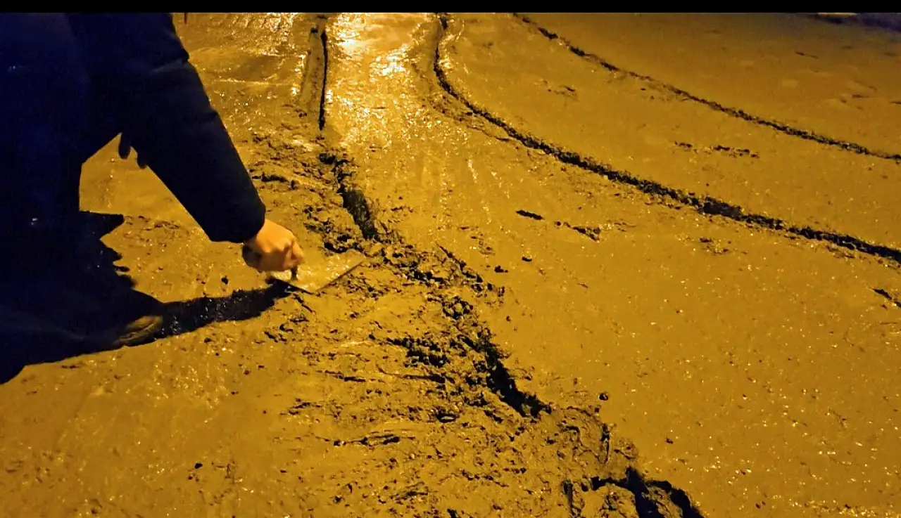 Ancak akşam saatlerinde, kimliği belirsiz bir motosikletli, yeni dökülen beton zemine girerek yolu boydan boya tahrip etti.